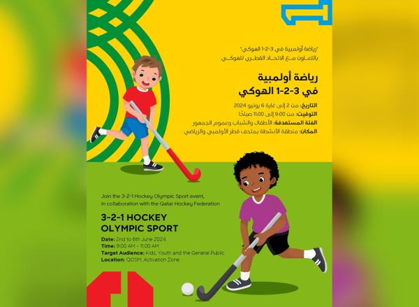 在本周末与卡塔尔冰球联合会合作的3-2-1曲棍球奥林匹克体育赛事中发现曲棍球的乐趣。该活动适合所有年龄段,旨在了解更多关于这项运动,发展曲棍球技能,并在专家教练的帮助下建立友情。